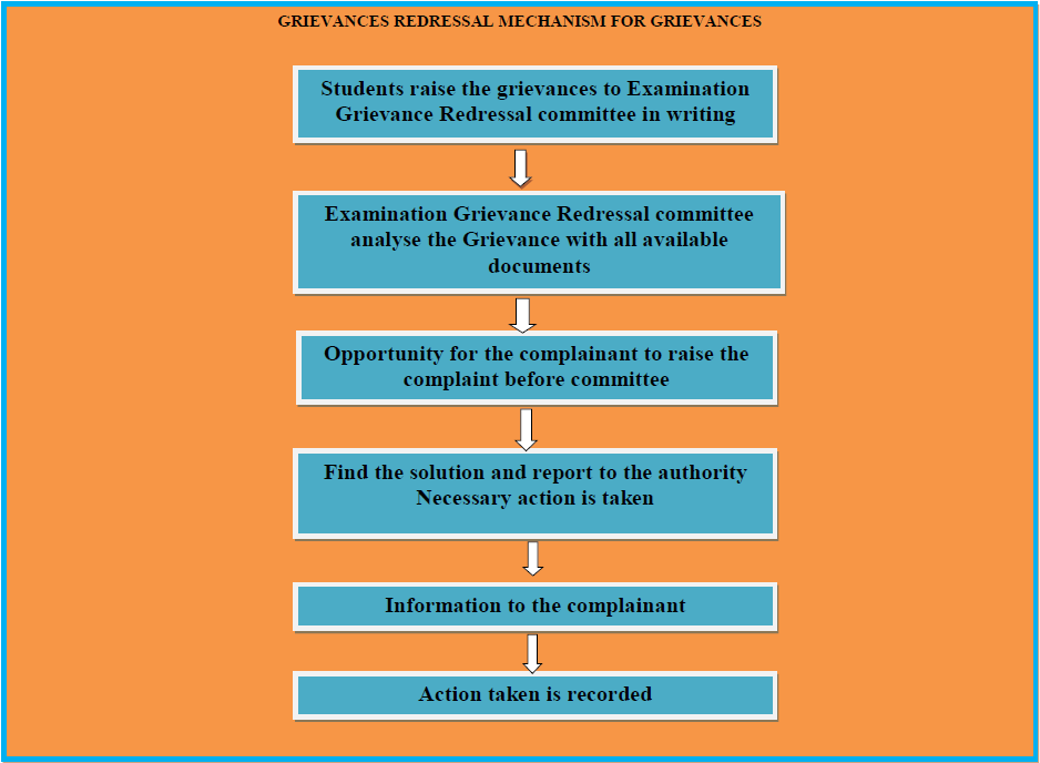- The students may feel free to put up a grievance in writing/or in the format available in the examination cell and drop it in grievance box.